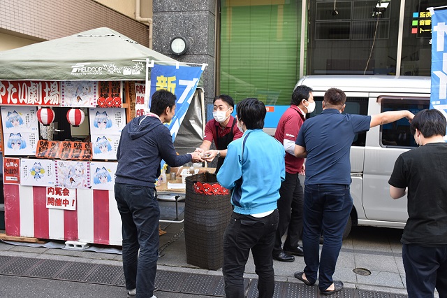 営業担当者は、「この時期にどうかと思ったが、オーイズミさんの厚意もあって、実施できました。たこ焼きはもちろん、梅ヶ枝餅も『おいしい』と好評。ホールに来場されるファンの方にもぜひ、お届けしたいです」と話した。
