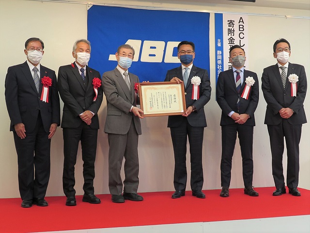 静岡県を中心に、山梨・長野・愛知に38店舗を展開するホール企業・ABCは11月10日、静岡市の「静岡総合社会福祉会館シズウェル」で、「ABCしあわせ基金」の寄付金、並びに福祉車両贈呈式を開催。