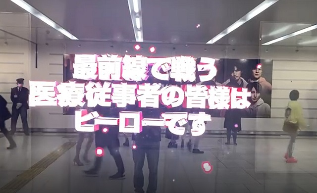 ウルトラマンやウルトラセブンの3D動画とともに、医療従事者に対する感謝のメッセージを放映している。