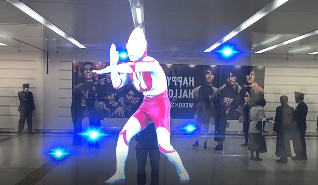 これは、10月29日から実施しているもので、コンコース内のショーウィンドウに、バーサライタ「3D Phatom」(縦約1.5m×横約2m)を12台設置。