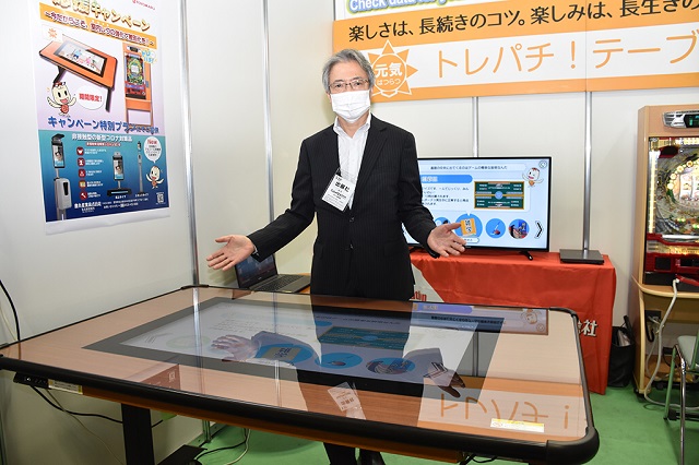 ブースでは、大型タッチパネルを食卓テーブルに搭載したテーブル型レクリエーション機器「トレパチ!テーブル」をPR。