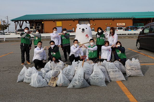 富山県で15店舗を展開するノースランドの「キングオブノースランド黒部店」(同県黒部市)とダイナムの「ダイナム入善店」(同県下新川郡入善町)は2月12日、両店の間に架かる「黒部大橋」、および橋のたもと周辺を合同で清掃。