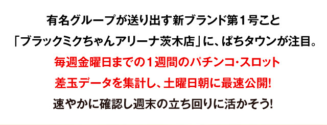 「ブラックミクちゃんアリーナ茨木店」週刊データ速報!