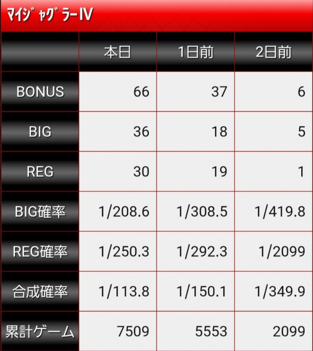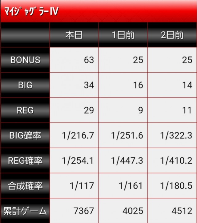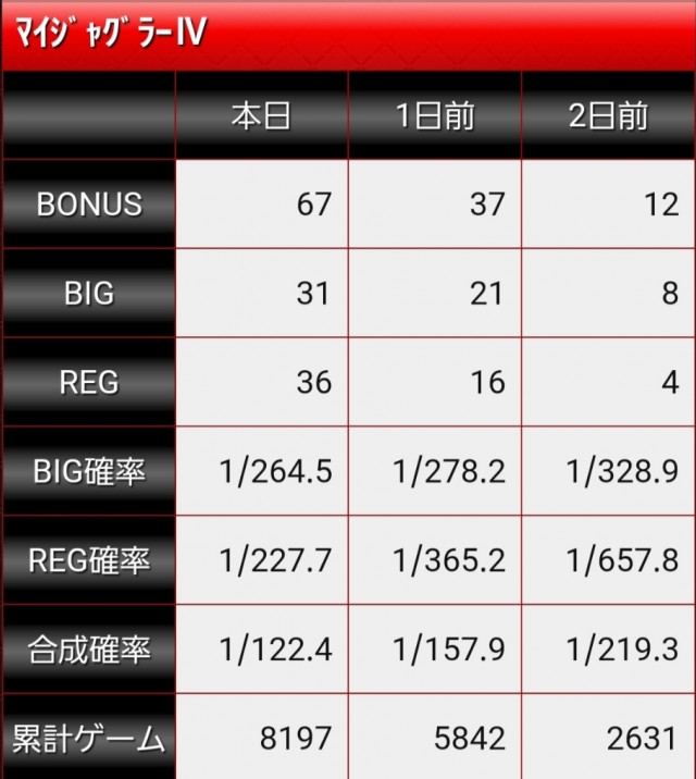 私、毎日かかさずデータをチェックしておりますが、『マイジャグラー4』には必ずと言っていいほど高設定が数台入っております!