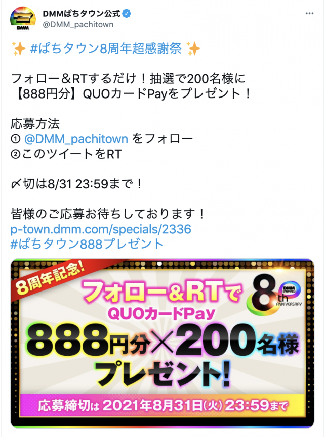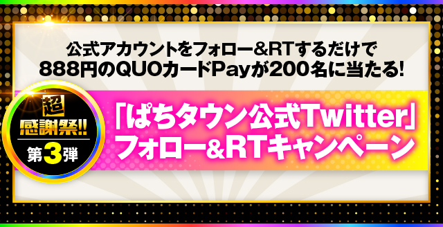 超感謝祭!!【第3弾】ぱちタウン公式Twitterフォロー&RTキャンペーン