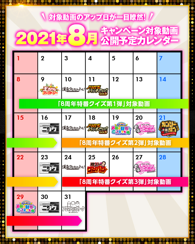 ほぼ毎日、クイズの対象動画が公開されます。ぜひ毎日チェックしてください!