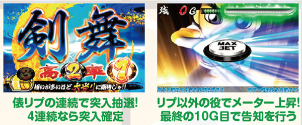 俵リプの連続から突入する剣舞高確は最終ゲームに成否を告知するタイプ。