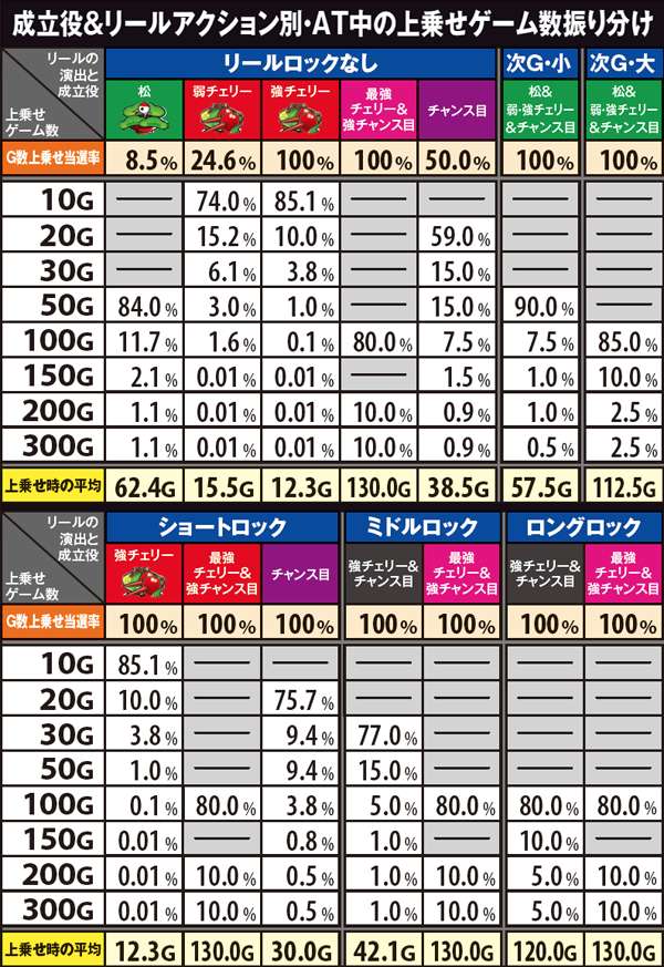 上乗せゲーム数振り分け・成立役&リールアクション別