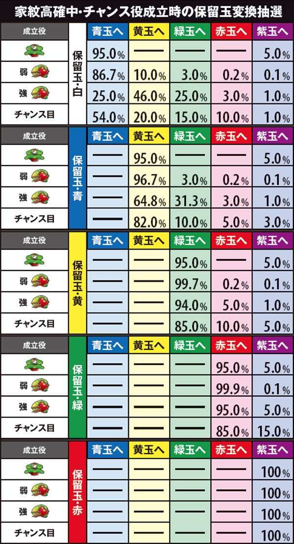 家紋高確率・チャンス役成立時の保留玉変換抽選