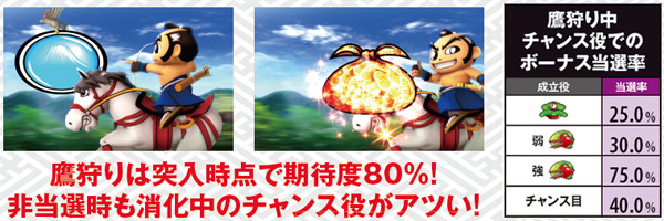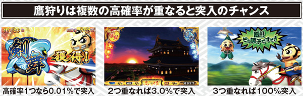 鷹狩りは高確率が重なると突入する可能性があり、3つ重なると突入確定。