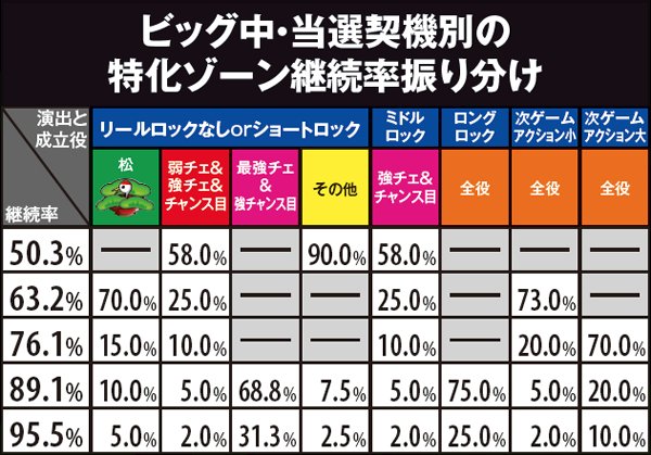 ビッグ・当選契機別の特化ゾーン継続率振り分け