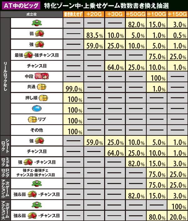 ※AT中に引いたビッグの場合はATゲーム数の上乗せ