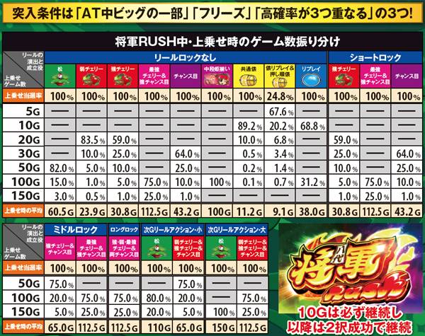 将軍RUSH中・上乗せ時のゲーム数振り分け