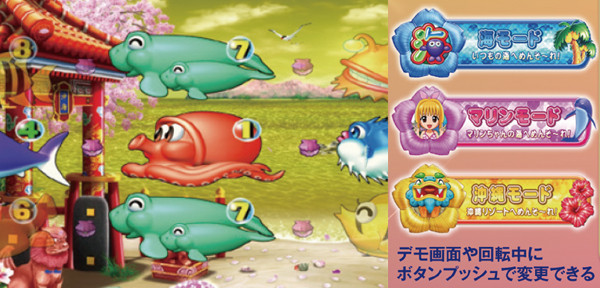 スペシャル魚群タイム中の背景は、桜の並木道をイメージした吉野と、赤瓦の屋根が印象的な民家の2タイプ。こうした背景に合わせ、流れるBGMも変化する。
