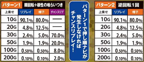 設定変更時は通常Aに滞在するのだが、1G、50~100G経過の時点でそれぞれ通常Bへの移行抽選が行われ、ここに設定差がある。50G過ぎ→ハズレやリプレイで高確移行なら高設定かも…!?