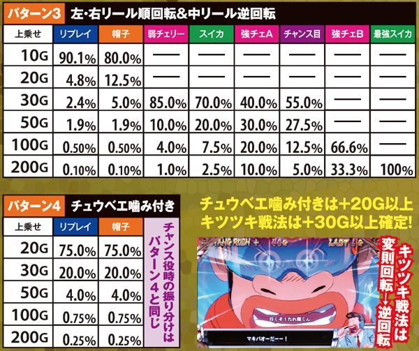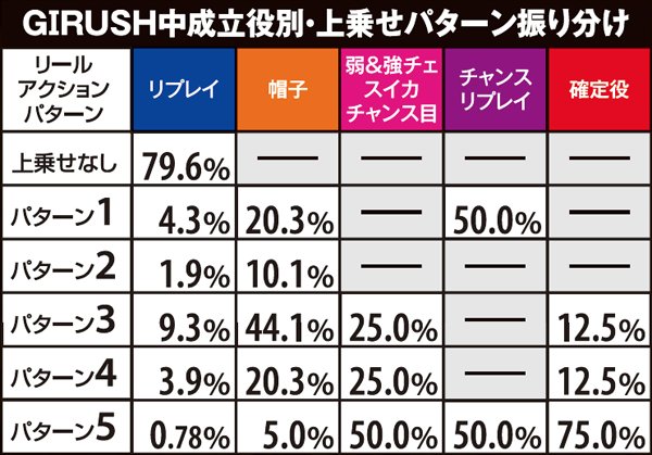 GⅠRUSH・回転パターン&成立役別上乗せゲーム数
