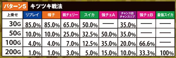 ※トレーニングモード終了待機中や調教前兆中に引いたチャンス役での調教当選率&調子メーター振り分けは超高確率時と同じ(リプレイ・帽子は通常と同じ)