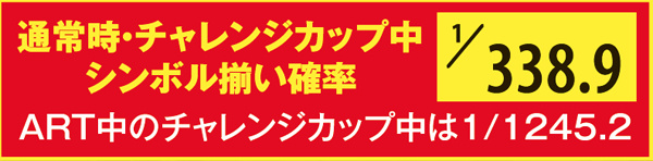 チャレンジカップ中にシンボル揃いを達成できれば、その時点でノーマルorスーパービッグが確定する。その確率は338.9分の1(通常時)だ。