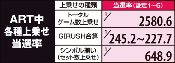 ビッグボーナス・「役物告知」ART当選率の詳細