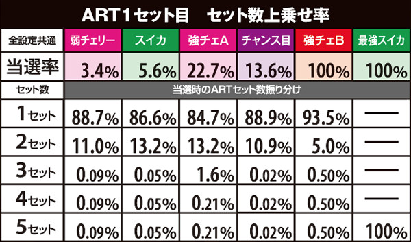 ビッグボーナス・「チャンス告知」ART当選率の詳細