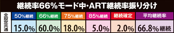 ART中の状態移行は「ラウンド開始時」にのみ若干の設定差があり、偶数ラウンドでは奇数設定がそれぞれ高確に移行しやすくなっている(7、9、10ラウンド以上を除く)。