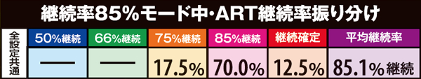 ART中に発生したチャレンジカップ後の状態移行は、84.5%で通常、15%で高確、0.5%で超高確となるが、設定差はないのでとくに気にする必要はない。