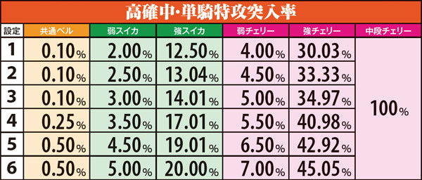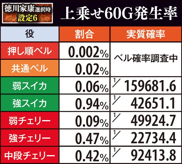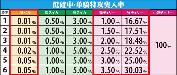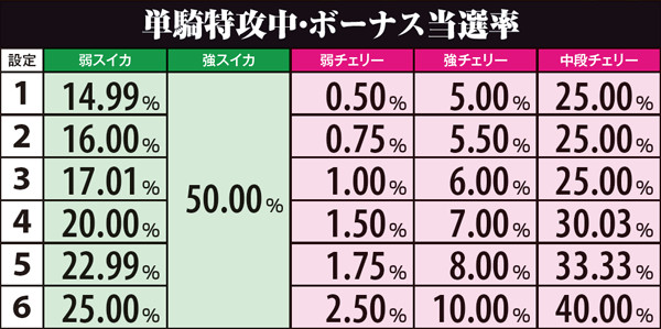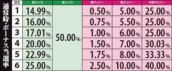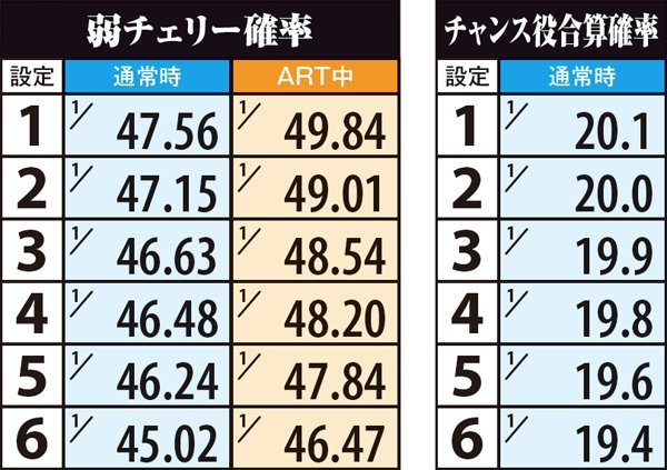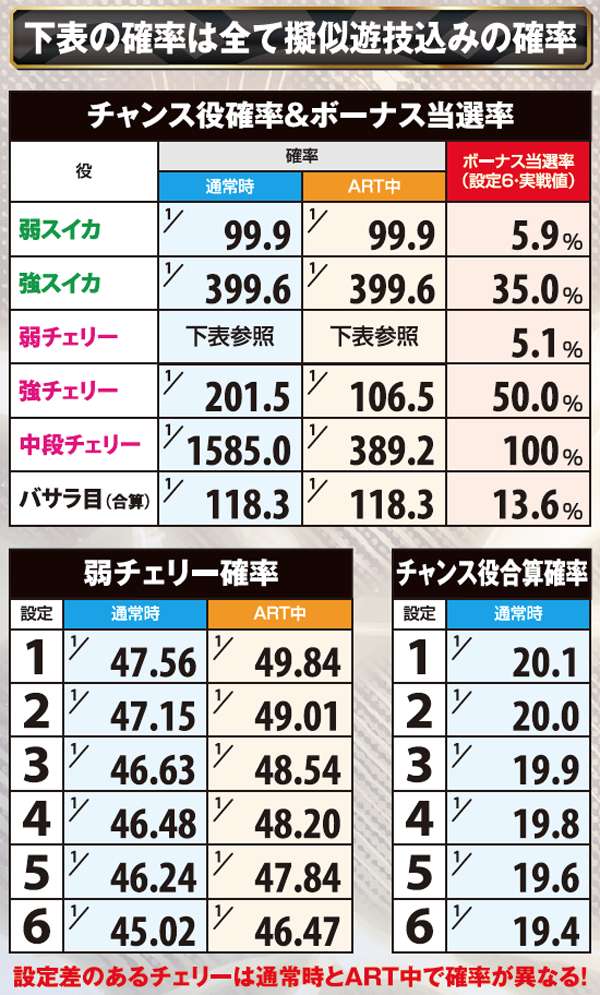 ※チェリーからの当選率はチェリーコンボを除いた数値/数値は設定6の実戦6746Gから算出