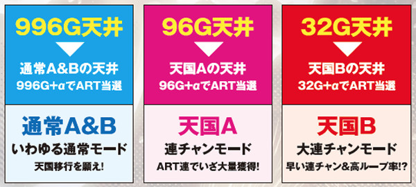 ■第1天井…ボーナス&ART間「32G」「96G」「996G」で第1天井到達