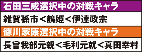 連撃乱舞突入率は石田三成の方が高いが、上乗せ性能は徳川家康の方が上。