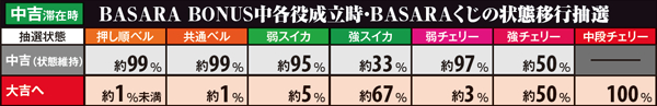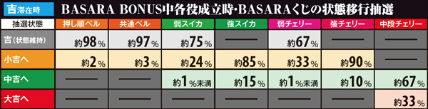 BASARA BONUS中・BASARAくじの状態移行抽選
