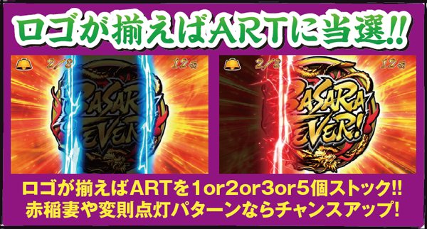 消化中は毎ゲーム成立役に応じてART抽選が行われ、一度に複数個のストックを得られることもある。