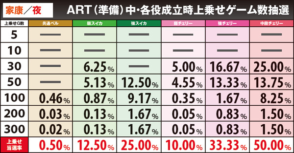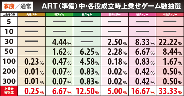 なお、ART中のボーナスはゲーム数上乗せ抽選が行われる。