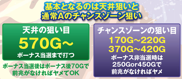 大半はゾーン突入から32Gまでが高レベルなので、ここまでに前兆開始→ジャッジとなることが多い。しかし、一部のマップでは51〜66Gでも高レベルとなることがあり、これを射止めたケースや100Gおきの高確などで「変則マップ」を見抜くことになる。