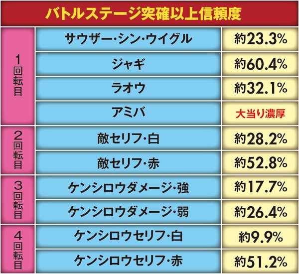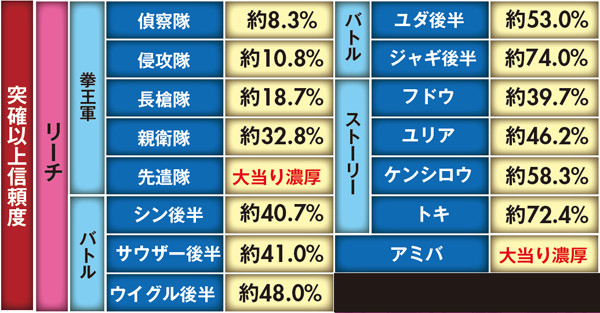 ※バトルリーチの信頼度はシンリーチ・シンステージ、サウザーリーチ・サウザーステージ、ウイグルリーチ・ウイグルステージ、ユダリーチ・マミヤステージ、ジャギリーチ・ジャギステージ滞在のモノで編集部調べです