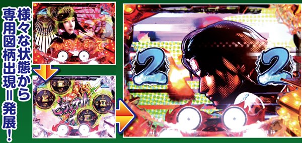 バトル以外にも複数のリーチがあり、こちらからも16Rが狙える。実戦上、演出に失敗しても確変からは転落しないため、発展すればチャンスと言える。