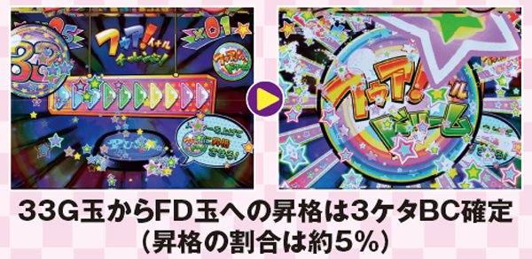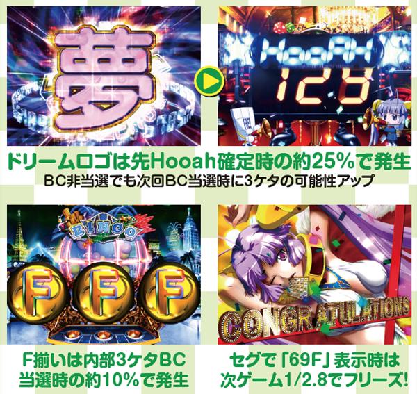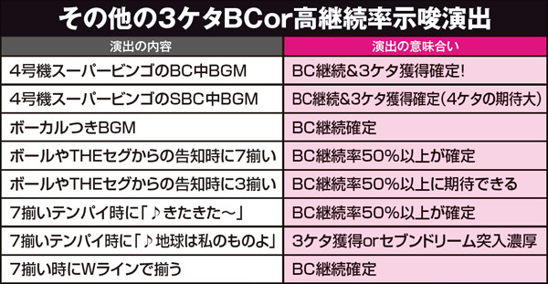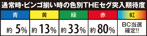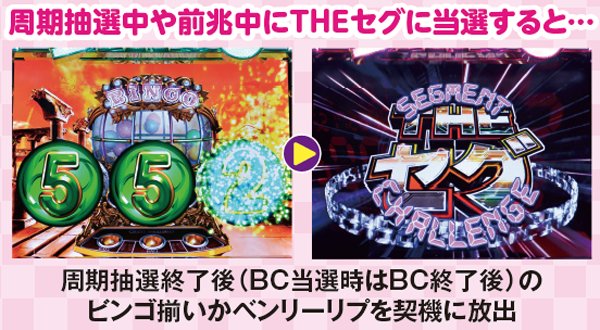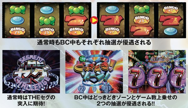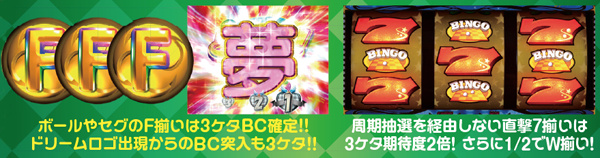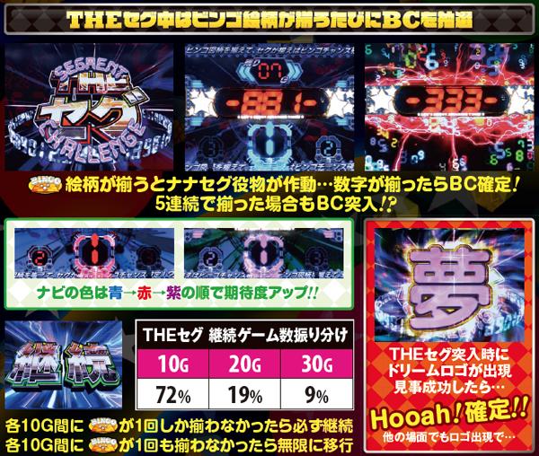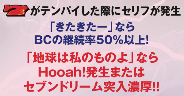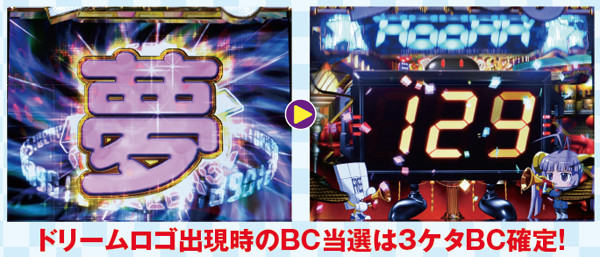 THEセグ突入時などにドリームロゴが出現することがあるが、そこでBCに当選すれば3ケタBCが確定。仮に当選できなくとも、次回BC当選は3ケタの可能性がアップする。