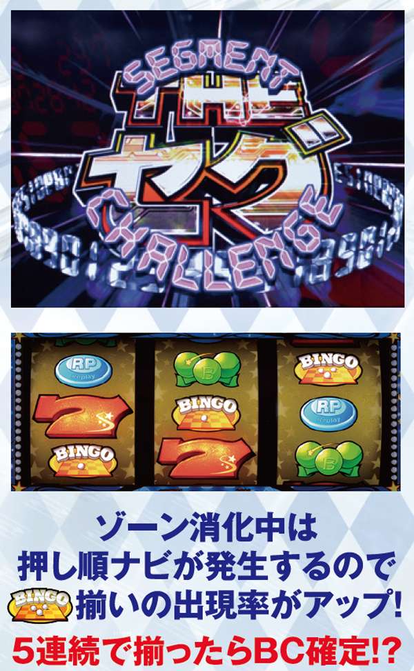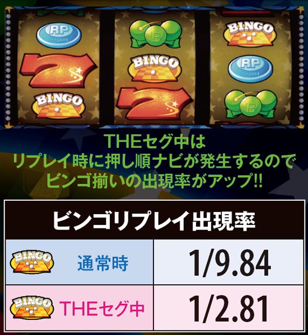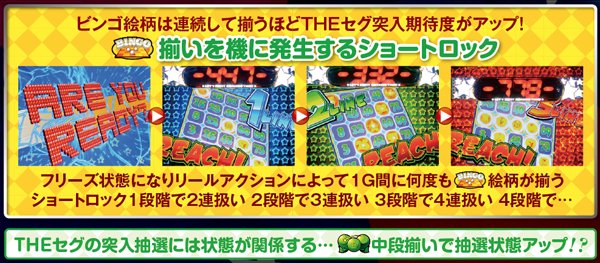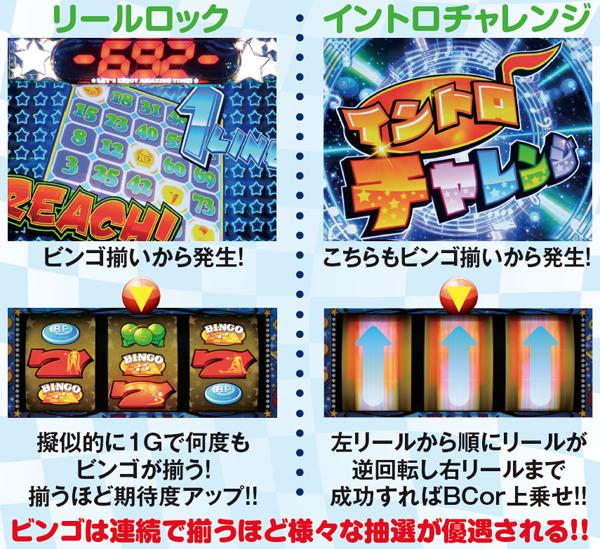 リールロック発生時はビンゴ連に期待。通常時ならTHEセグやBC当選に、BC中なら上乗せやどっきどきゾーン突入のチャンスとなる