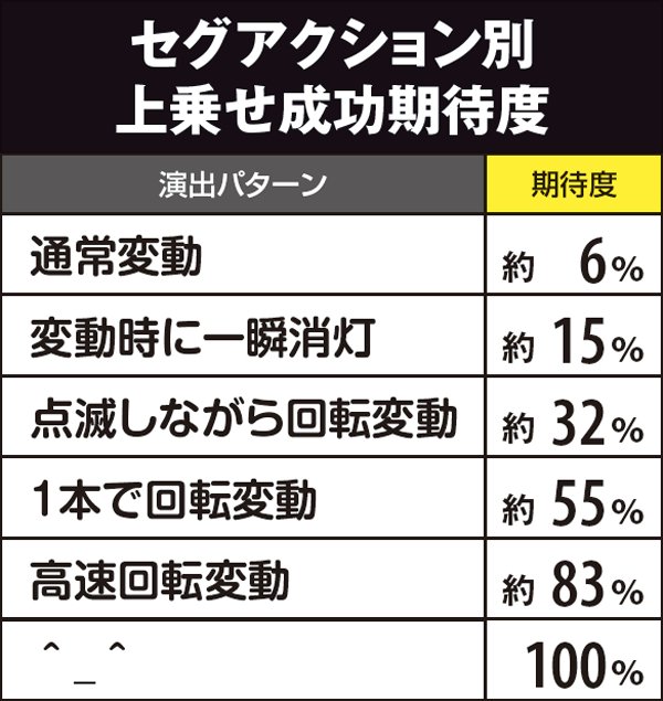 上乗せ特化ゾーンである「どっきどきゾーン」消化中はビンゴ揃い時のセグのアクションに注目で、通常変動以外が発生すれば期待度アップ。「1本で回転変動」や「高速回転変動」なら激アツ、セグがニコちゃんマークの形になれば上乗せ確定となる。