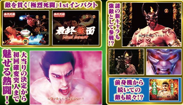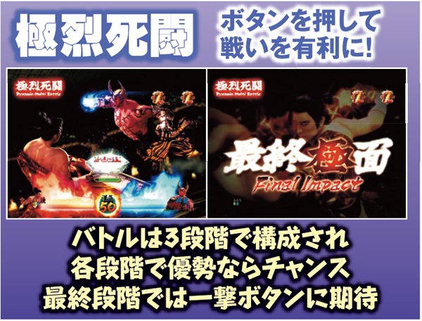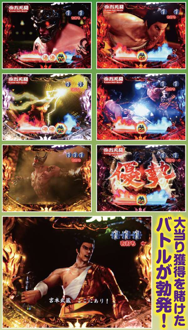 前作でも圧巻の殺陣でプレイヤーを興奮させたバトル演出は、本機でも様々な場面で繰り広げられる他、敵を追加した新アクション「二極バトル」の一環としても展開するようだ。