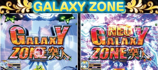 GALAXY ZONE図柄の3つ揃いやZONE浸食予告から突入する先読みゾーン。このままではチャンス程度だが、上位のNEO GALAXY ZONEに昇格すれば激アツとなる。