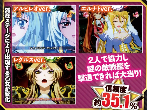 惑星アストライアへの到着を阻止すべく、乙女の前に立ちはだかる宿敵マリア・ラルク。「星喰いの魔女」の異名を持つ強敵だが、約7割の高確率で大当りに。