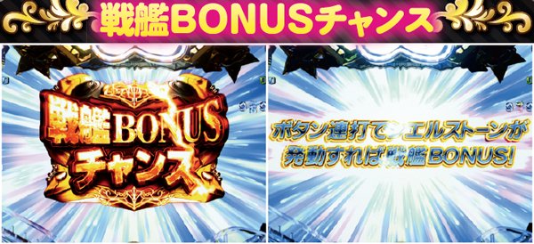 弱リーチである日常やSDのハズレ、または戦艦BONUSチャンス突入予告から発展。ボタン連打でシエルストーンギミックが発動すれば戦艦BONUSを獲得。