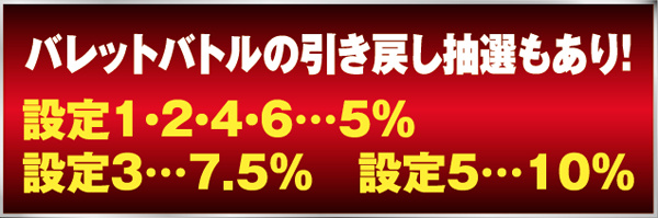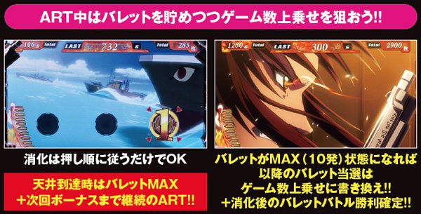 フルバレット時は内部状態に合わせた通常の上乗せ抽選に加え、バレット獲得抽選の代わりにゲーム数加算抽選が行われるので上乗せ性能がアップする。
