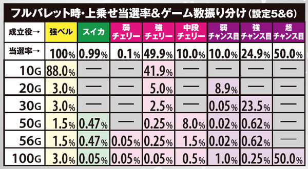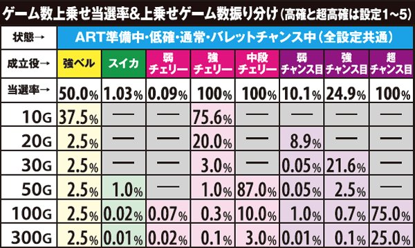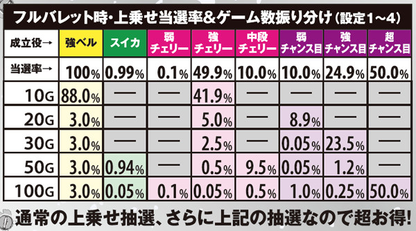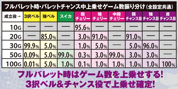 ゲーム数上乗せ当選率&ゲーム数振り分け・フルバレット時