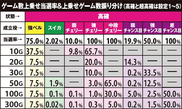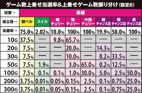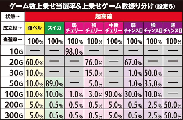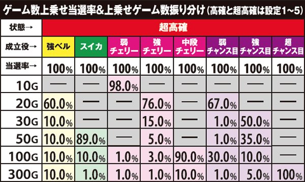 ゲーム数上乗せ当選率&ゲーム数振り分け・チャンス役成立時