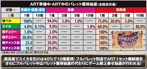 ●バレットバトル準備中は高確滞在中と同じ確率でART直撃抽選