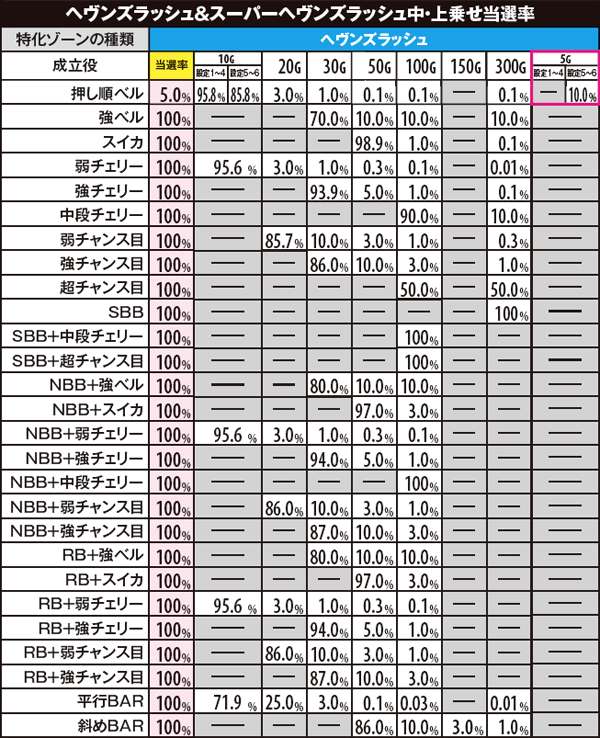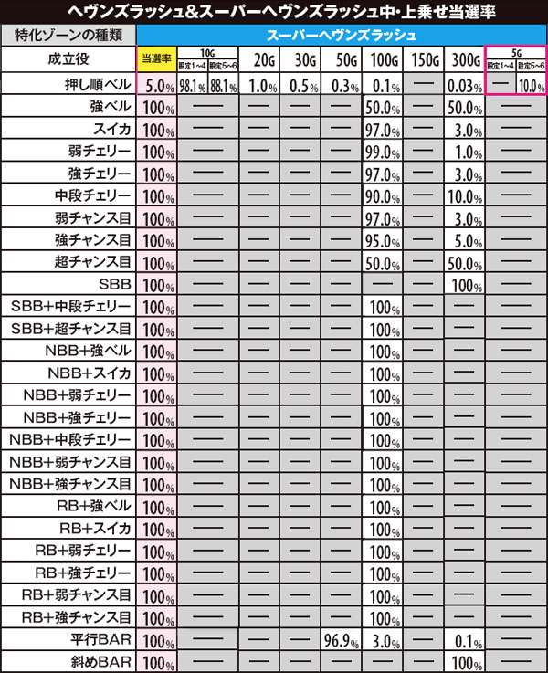 スーパーヘヴンズラッシュ・上乗せ当選率