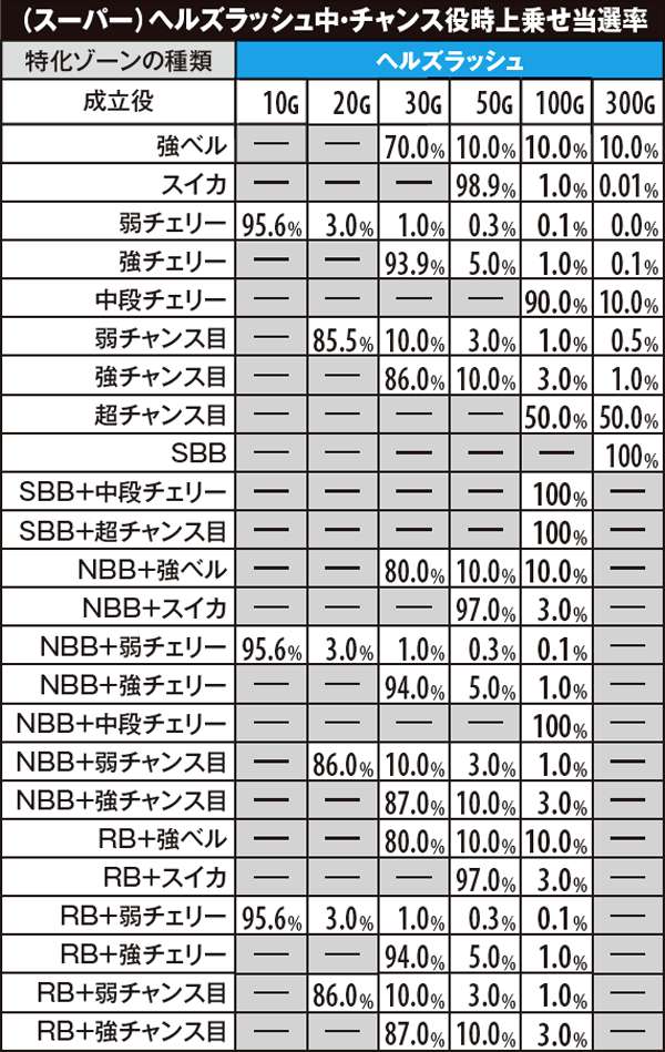 (スーパー)ヘルズラッシュ・チャンス役時上乗せ当選率
