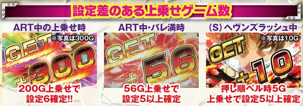 ART中のゲーム数上乗せは内部状態が超重要。最上位の超高確であればチャンス役成立=上乗せ確定となる。ちなみに、ボーナスの重複・非重複に関係なく、同様の上乗せ抽選が行われる。