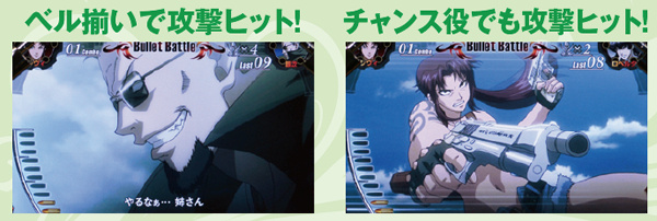 バトル中はリプレイ以外の小役が成立すれば敵にダメージを与えるチャンス。押し順ベル時はバレットを獲得していれば、必ずナビが発生する。バレットがなくなると、押し順ベル時に「?」ナビ発生。レビィの攻撃なら押し順正解となるが、反撃目(ベルの取りこぼしの一部)が停止した場合も、敵にダメージを与えることができる。